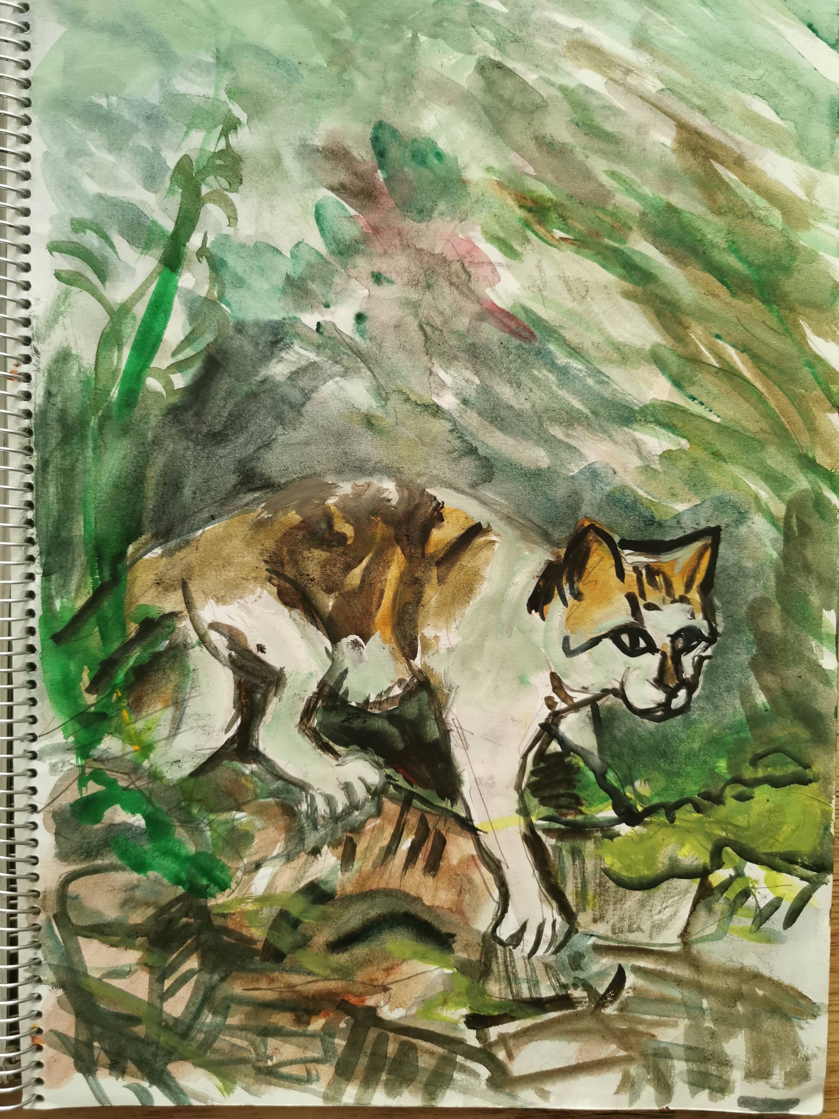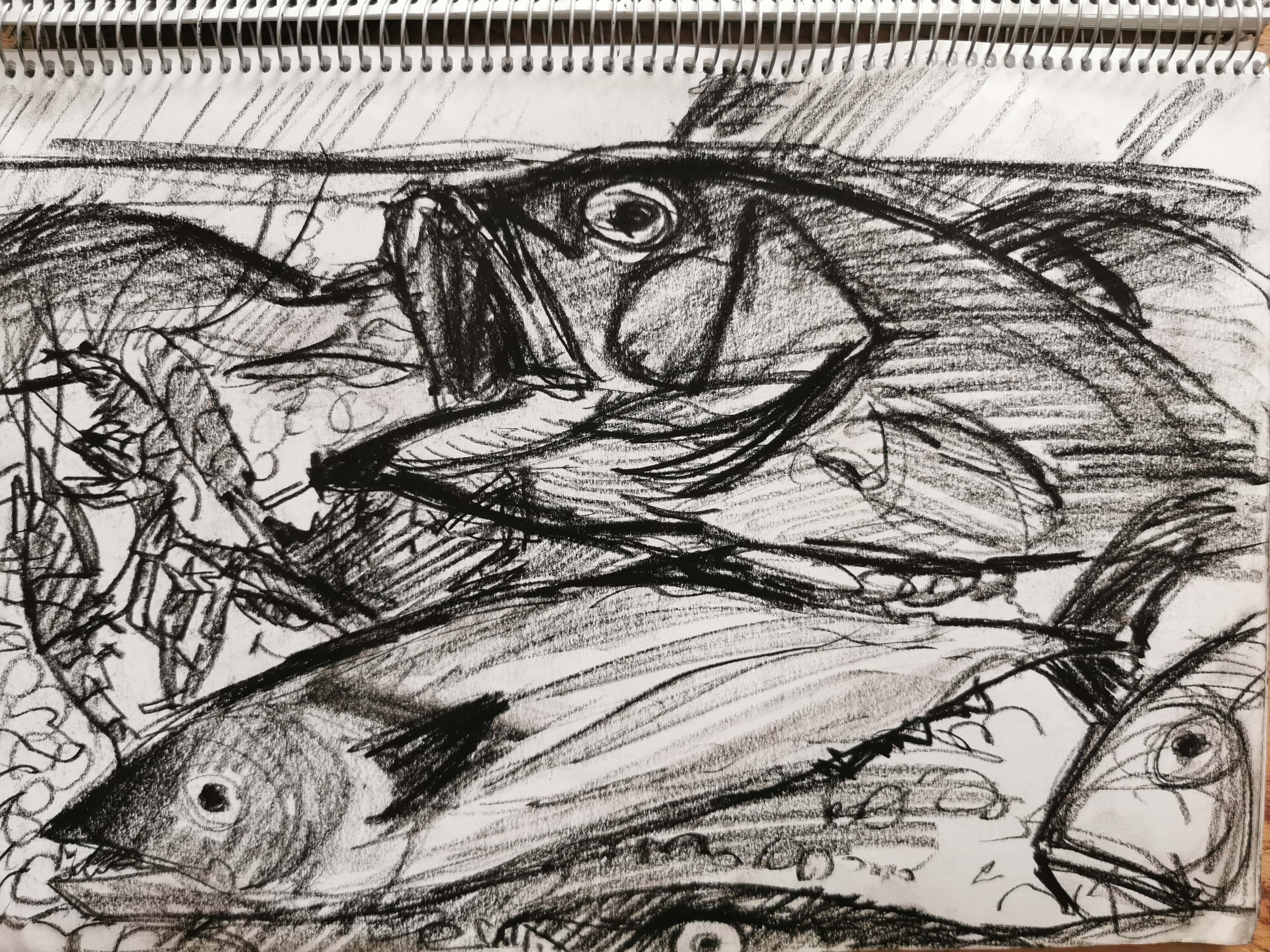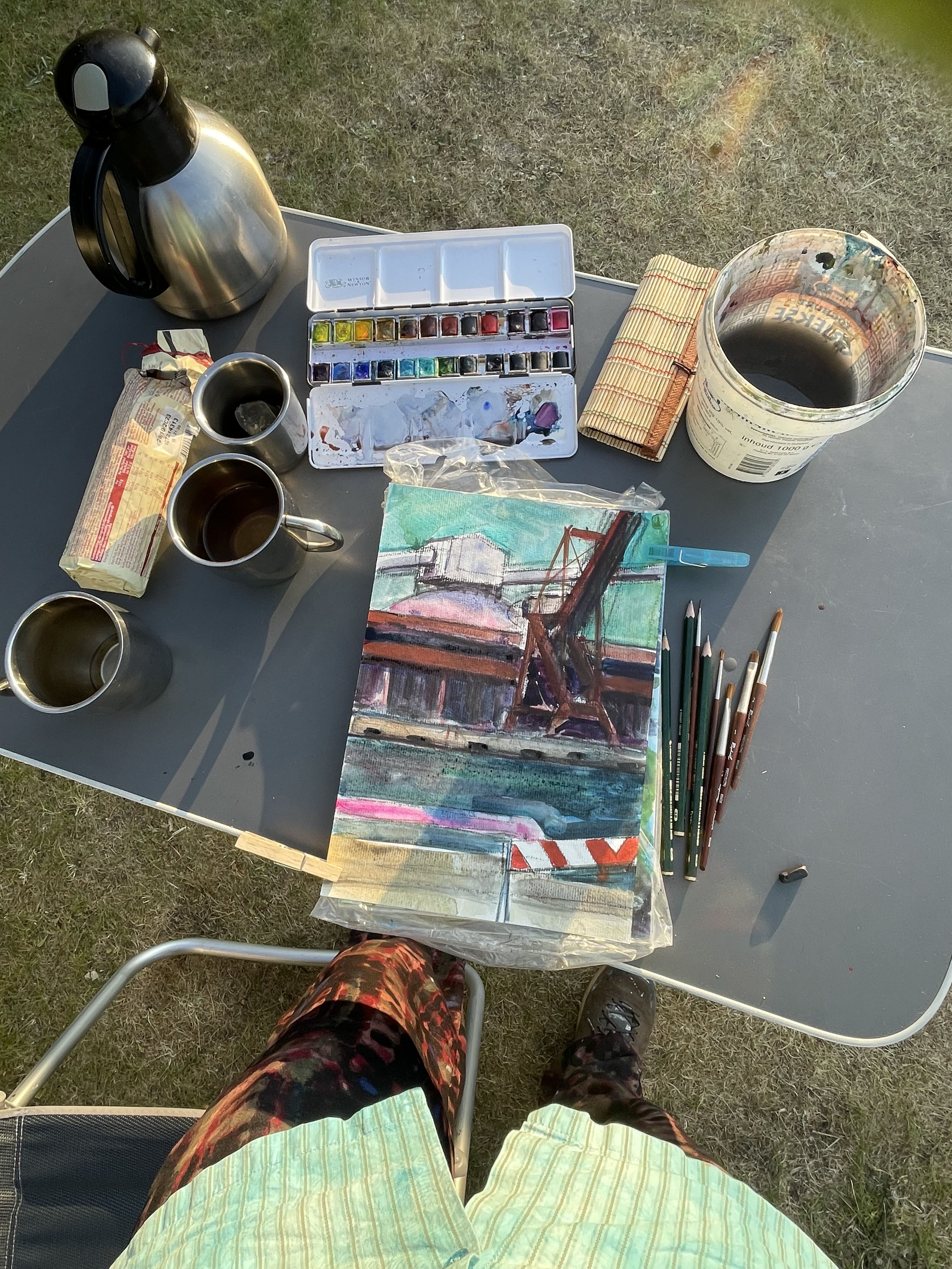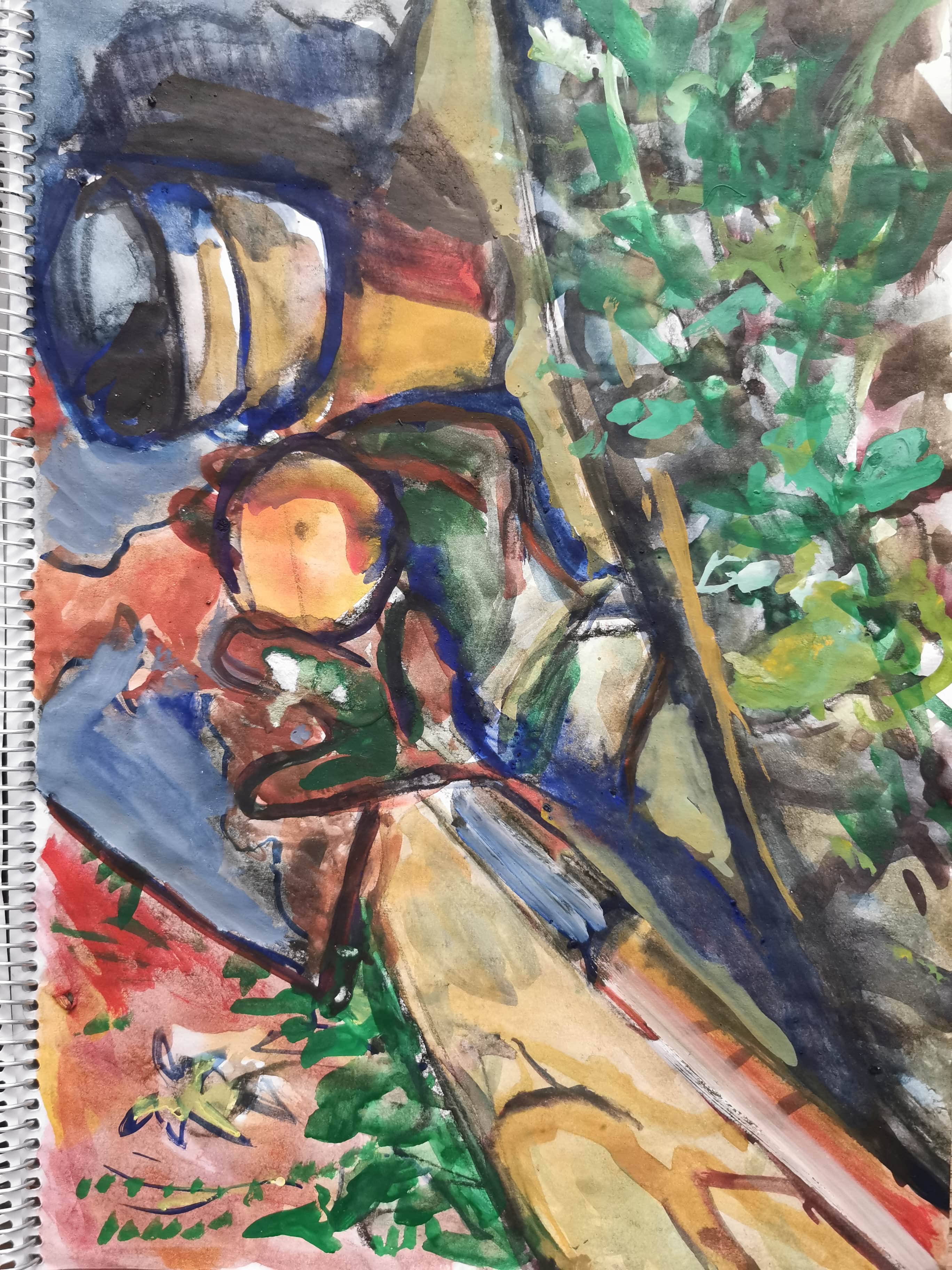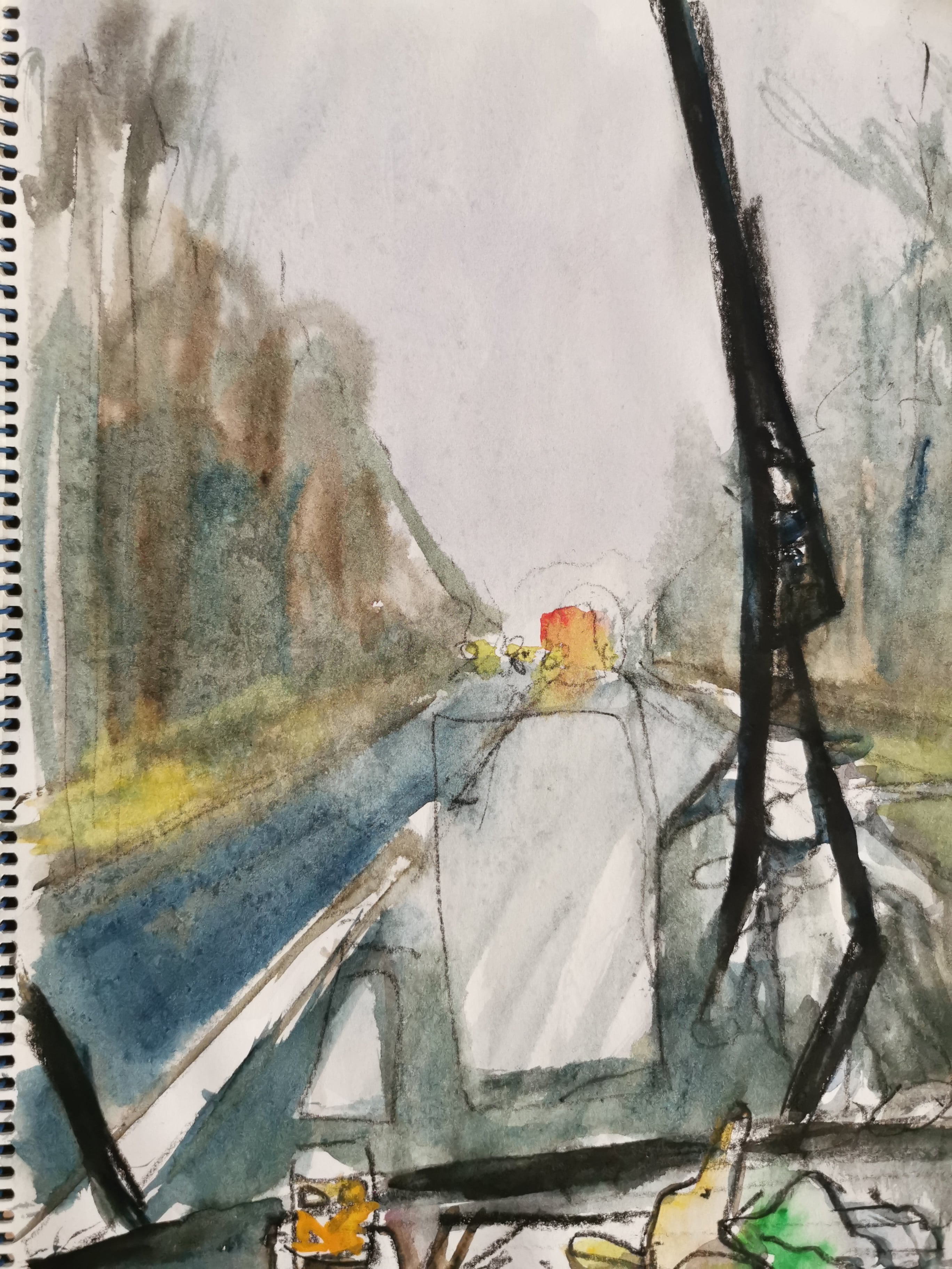 Ik zal niet snel zonder mijn kooltjes, aquarelverf en schetsboek op reis gaan. Wanneer ik met mijn campertje op pad ga, dan neem ik ook wel eens schilderdoeken mee en maak ik ter plaatse verf met natuurlijke producten. Waar er dan een mogelijkheid is, zet ik mijn schildersezel neer en begin ik in de vrije natuur en plein-air te schilderen.