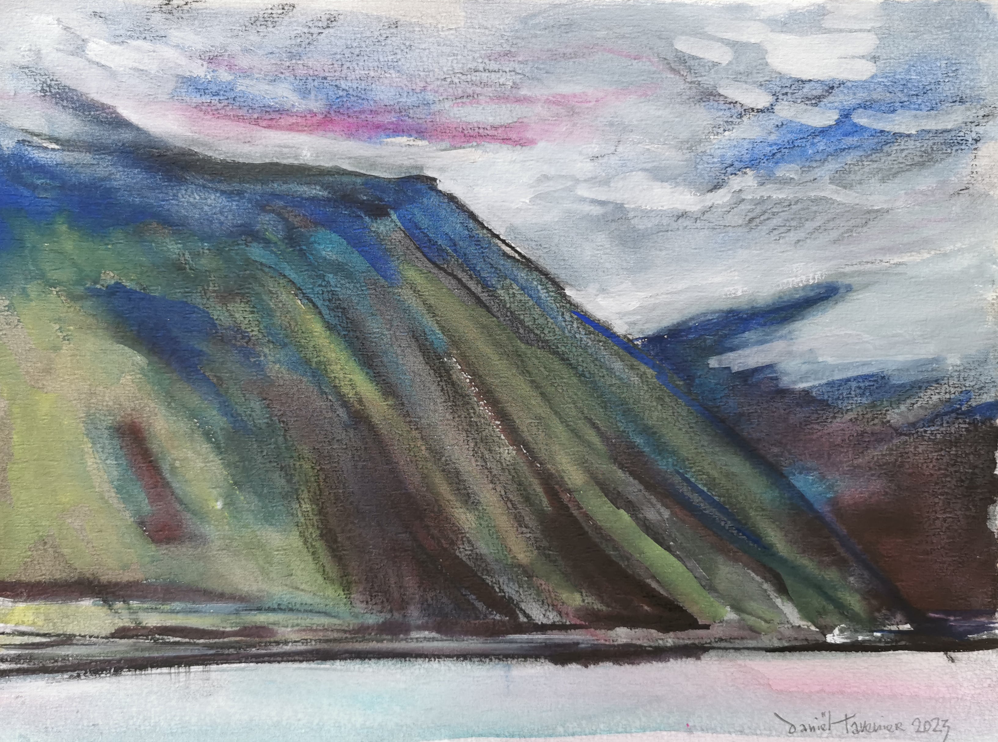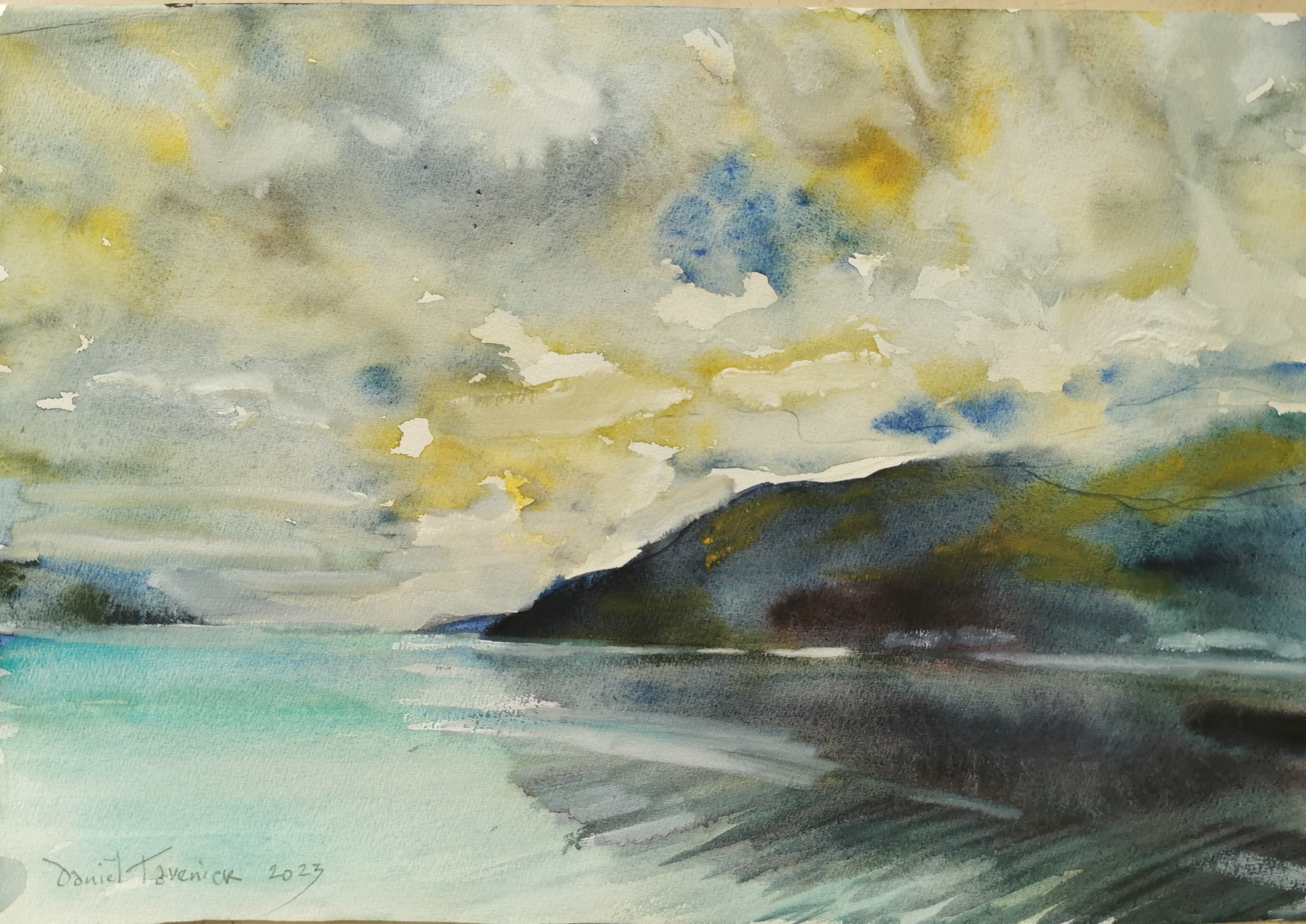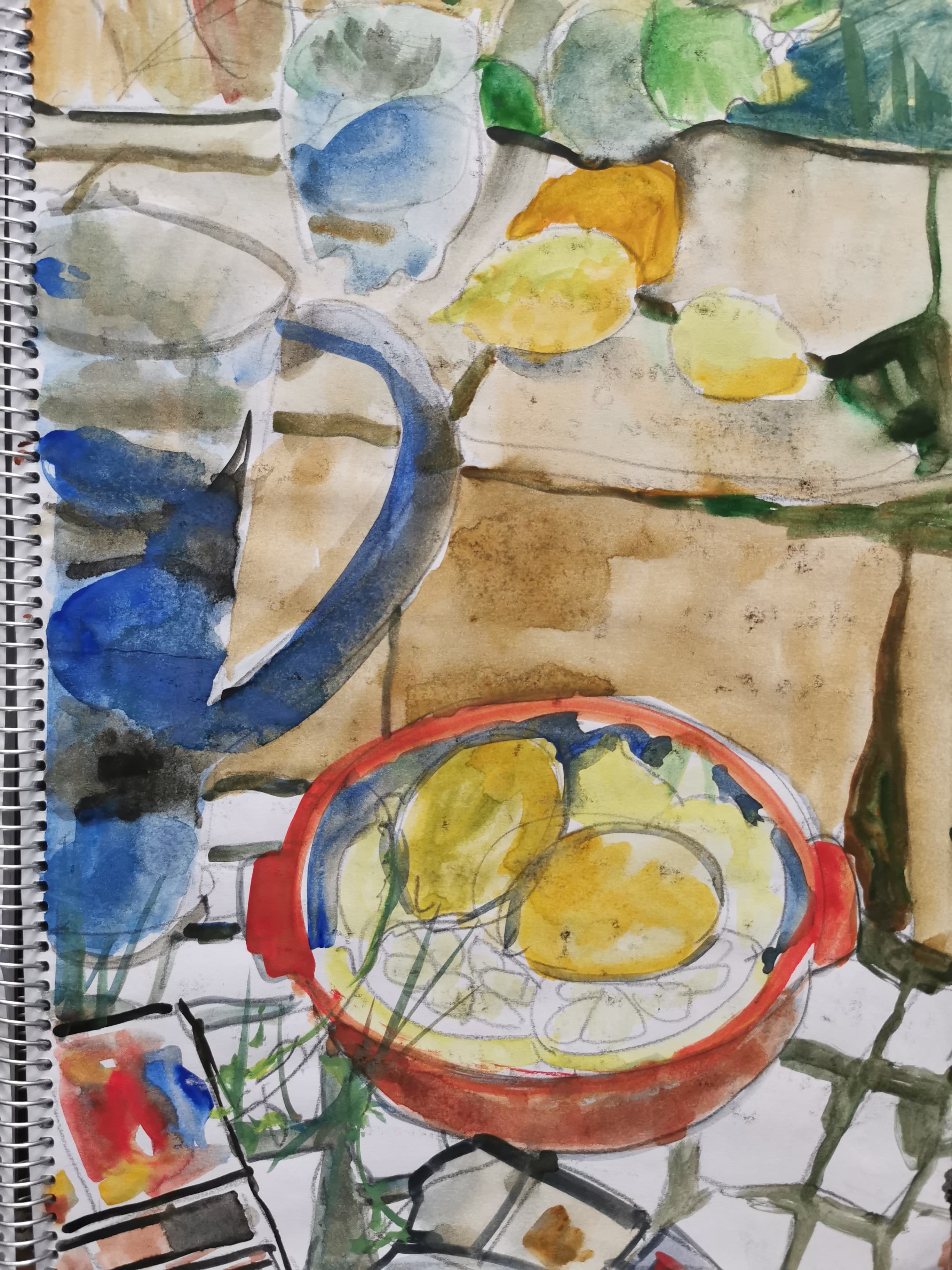 Moeder Corrie had een week lang een glimlach van oor tot oor en deed zichzelf nog versteld staan met de energie die ze tevoorschijn toverde, want ze wilde zoveel mogelijk beleven en optimaal genieten van alles wat er te zien en te doen was (en wij genoten uiteraard volop mee). De laatste dag op zee heb ik even mijn aquarelblok gepakt en wat geschilderd en die aquarellen zie je hieronder.