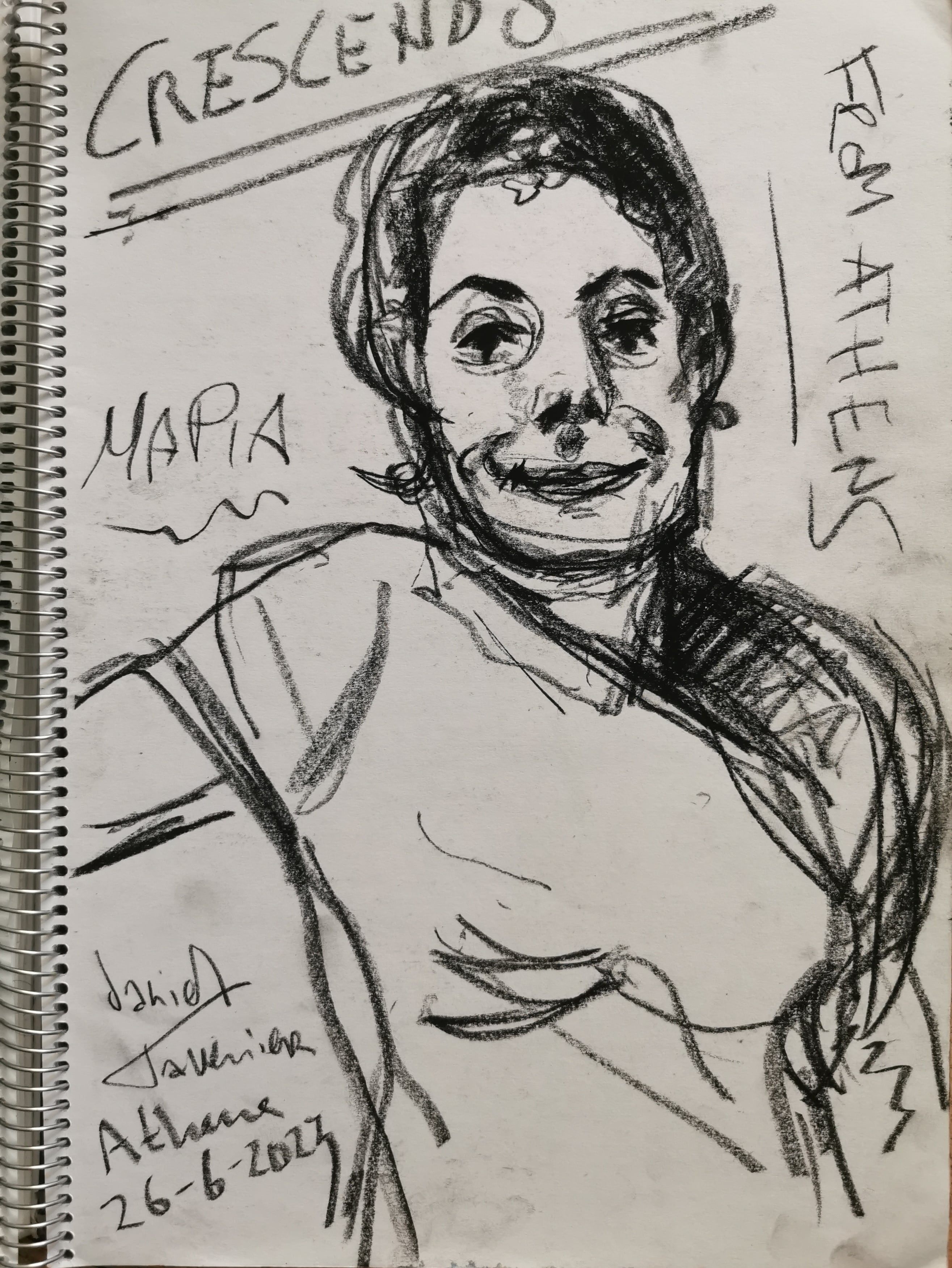 Vanuit ons gele vakantiehuisje rijden we langs de noordkust van Samos waar de wind prachtige schilderijen creëert op de zee. We bezoeken kunstenaarsdorp Manolates, veel kloosters en kerkjes en we kopen keramiek bij pottenbakkers. Onze laatste vakantiedag brengen we door met onze creatieve gastvrouw Siina, die ons meeneemt naar mooie plekjes, zoals een strand met brokstukken van een oude tempel in zee, een grotklooster en een restaurant Nektarios in Hraio. Samos heeft voor mij alles tegelijk en Lisette is ook onder de indruk en we komen in de verleiding een klein huisje te kopen in het dorpje Mili. Ik leg Siina einde middag nog vast in mijn schetsboek en we zullen haar en het gele huisje zeker nog een keer bezoeken om weer een nieuw eilandhoppen avontuur aan te gaan!