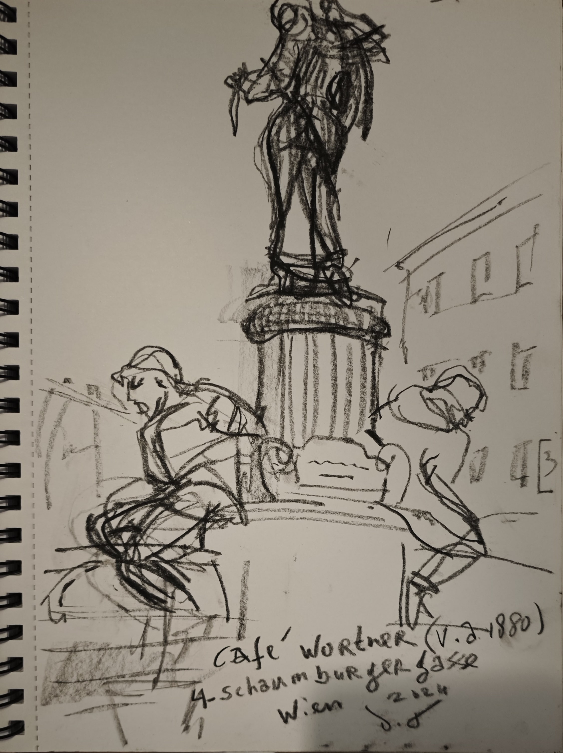 Tussen de bezoeken aan de musea en de concerten in, heb ik een paar korte momenten genomen om wat tekeningen in mijn schetsboek te maken. Wenen is te mooi om niet vast te leggen en zo af en toe probeerden wij toch echt even een pauze in te lassen om even bij te komen van alle indrukken (en om natuurlijk een Sacher Torte of Apfelstrudel te eten.