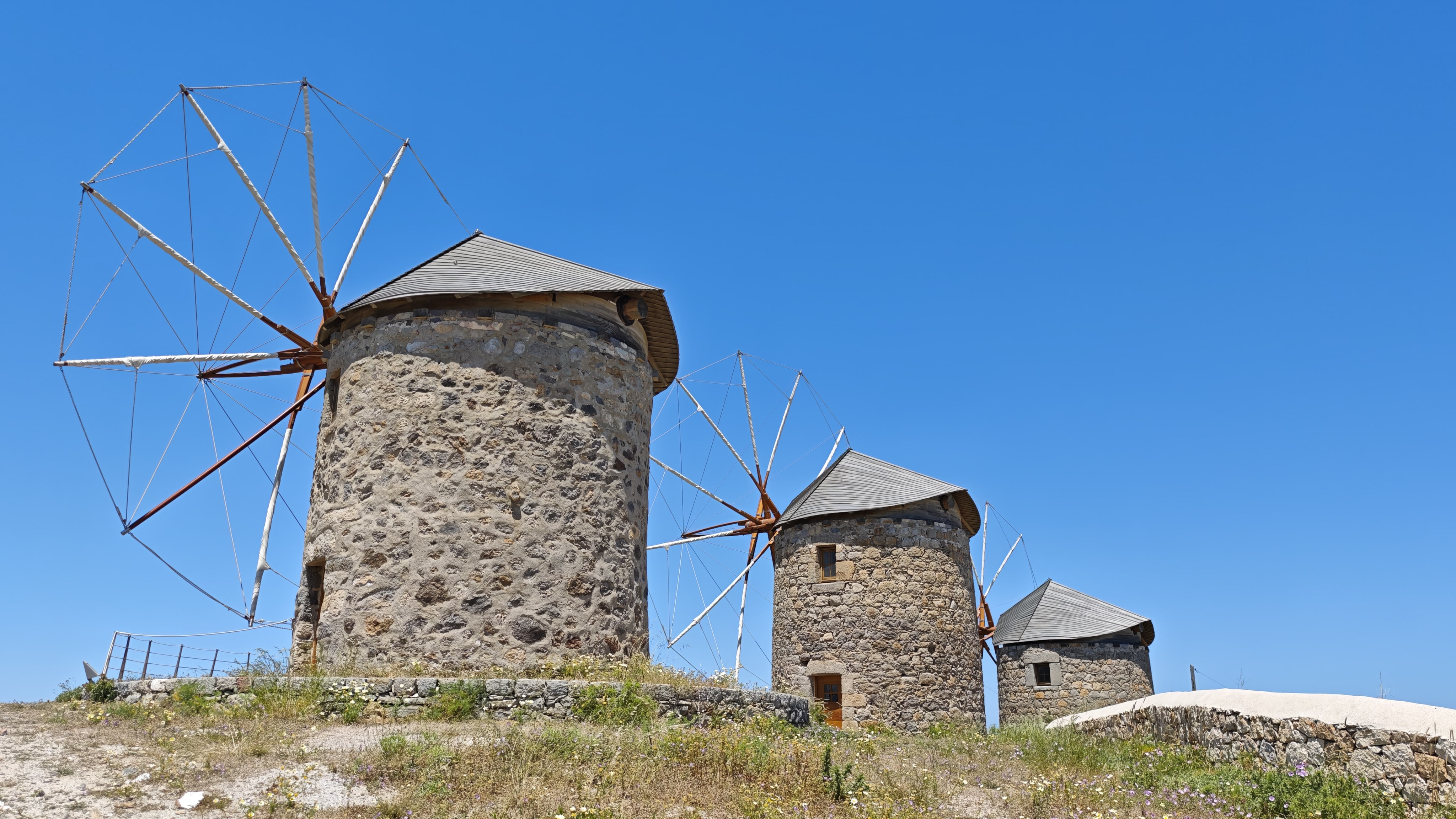 Leros is een bron van inspiratie met haar groene natuur, waar veel bijzondere planten en bloemen te vinden zijn. We zien prachtige vlinders die Lisette met haar camera probeert vast te leggen en we genieten van het ene mooie uitzicht na het andere. Het eiland staat bekend om de oude gebouwen met Italiaans karakter (te danken aan de tijd dat de Italianen hier zaten). Er is veel leegstand en in de oude dorpen zie je verlaten huizen met blauwe leuken en deuren die er half bijhangen. Je zou er zo één willen kopen, opknappen en in gaan wonen.