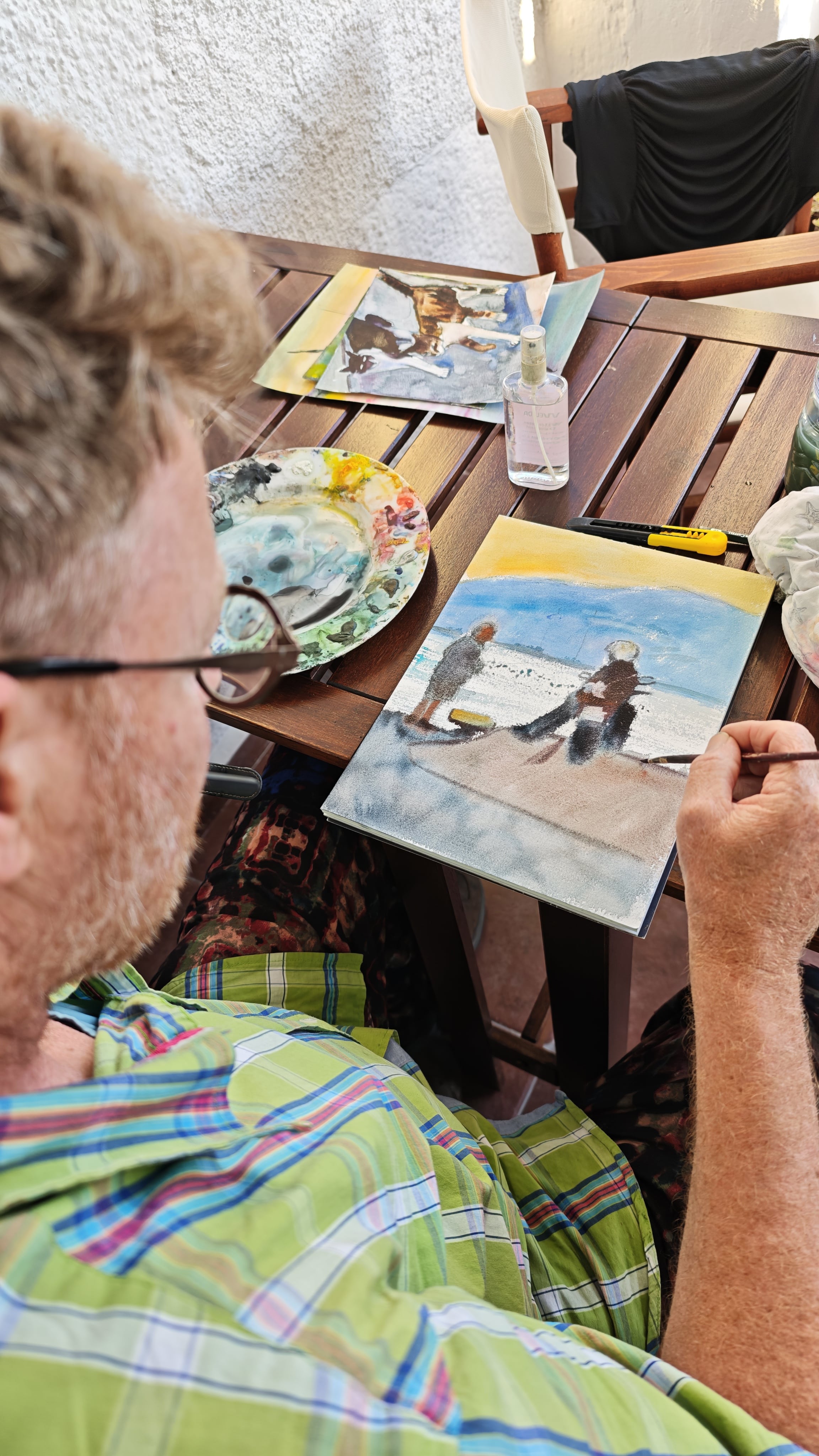 Nu ik dit schrijf, eind juli 2025, ben ik veel reisimpressies in mijn atelier aan het schilderen en welke dat gaan worden, daar ben ik zelf ook benieuwd naar! Lisette vindt dat ik zelf wel weer eens mag exposeren in De Rode Schuur en wellicht gaat dat onder de naam van de Reizende Kunstenaar gebeuren volgend jaar juni (2026) tijdens het Open Tuin weekend… wordt vervolgd!