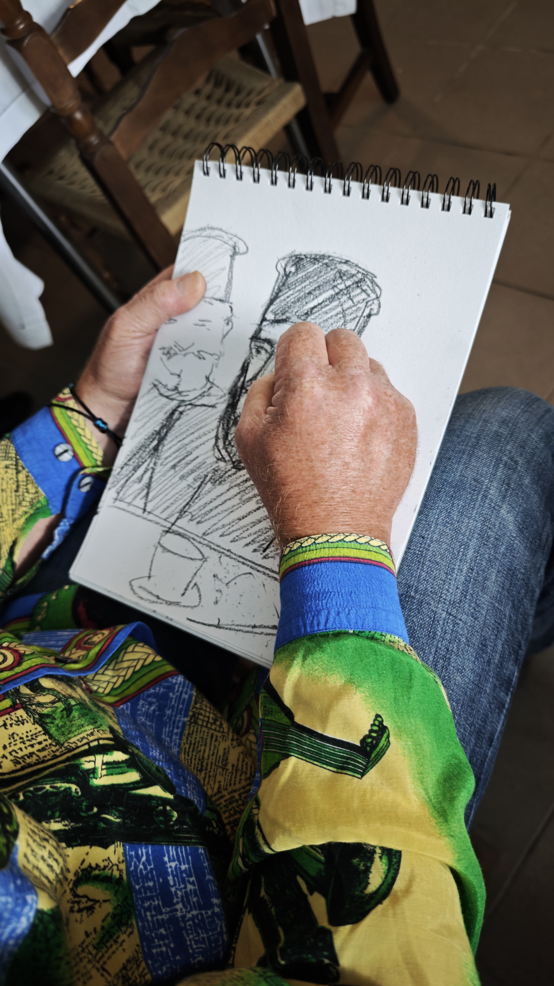 Ik ben op deze reis voornamelijk zoon, broer en vader en een beetje De Reizende Kunstenaar. Ik had plannen om te schetsen, om o.a. mijn familie goed te portretteren, maar hiervoor was helemaal niet zoveel tijd. Ik heb maar een paar schetsen gemaakt en zo hoort het eigenlijk ook. Het werd een geweldige reis vol dierbare momenten, waardevolle gesprekken en bijzondere belevingen als familie Tavenier; een reis om nooit meer te vergeten!