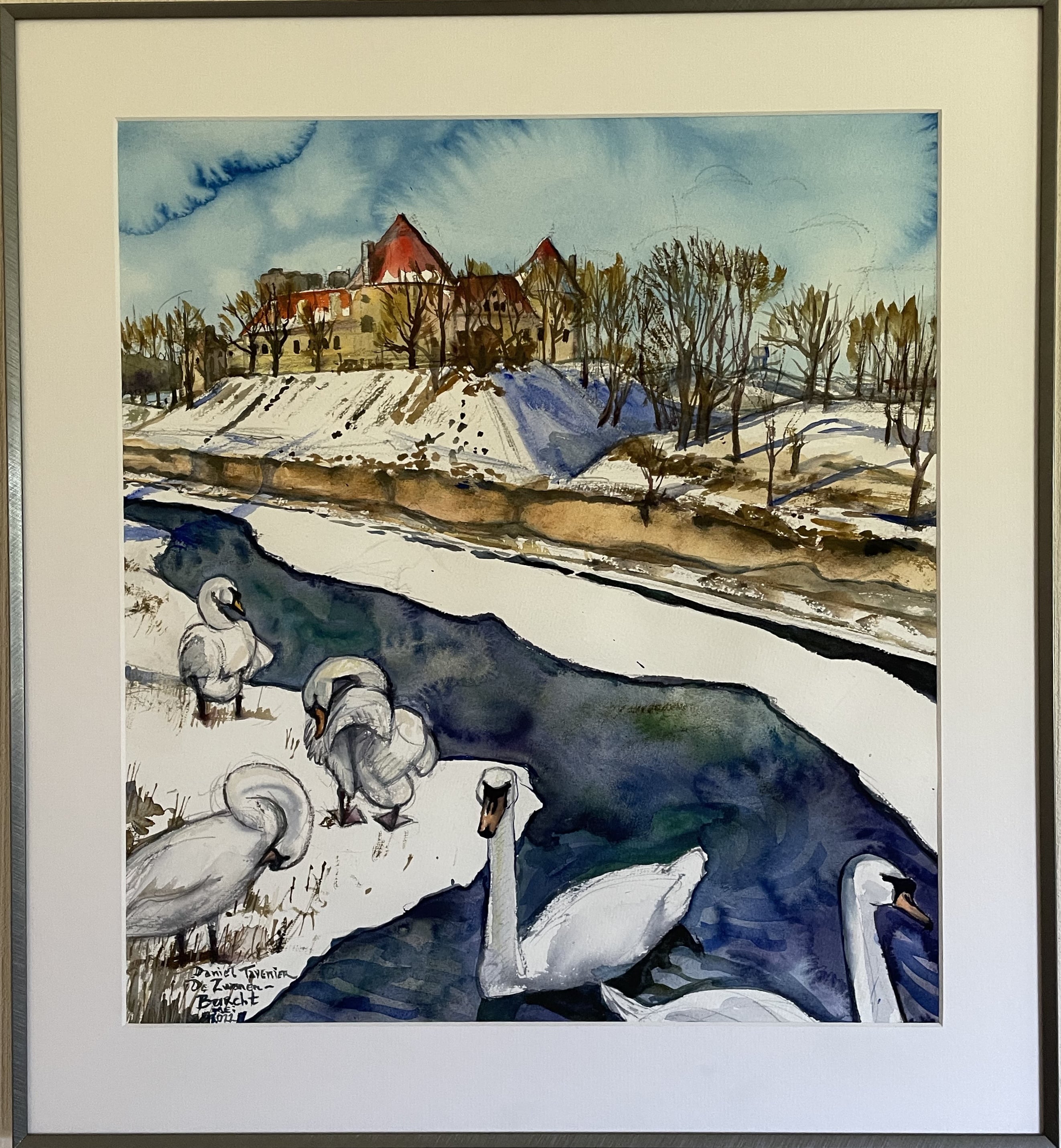 Deze 2 levendige aquarellen hangen bij de ouders van Armands (vriend van dochter Rhodé) aan de muur in Riga, Letland.