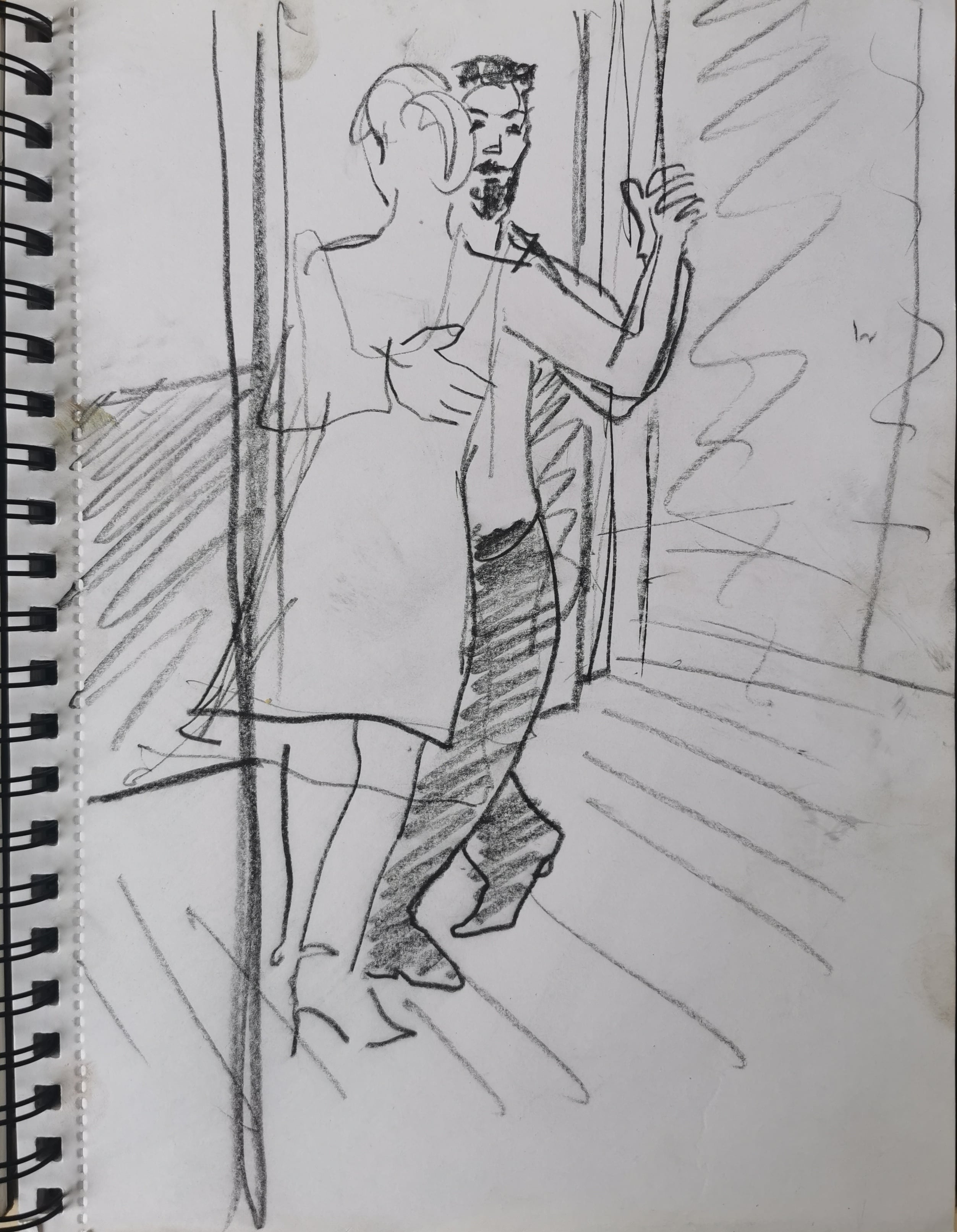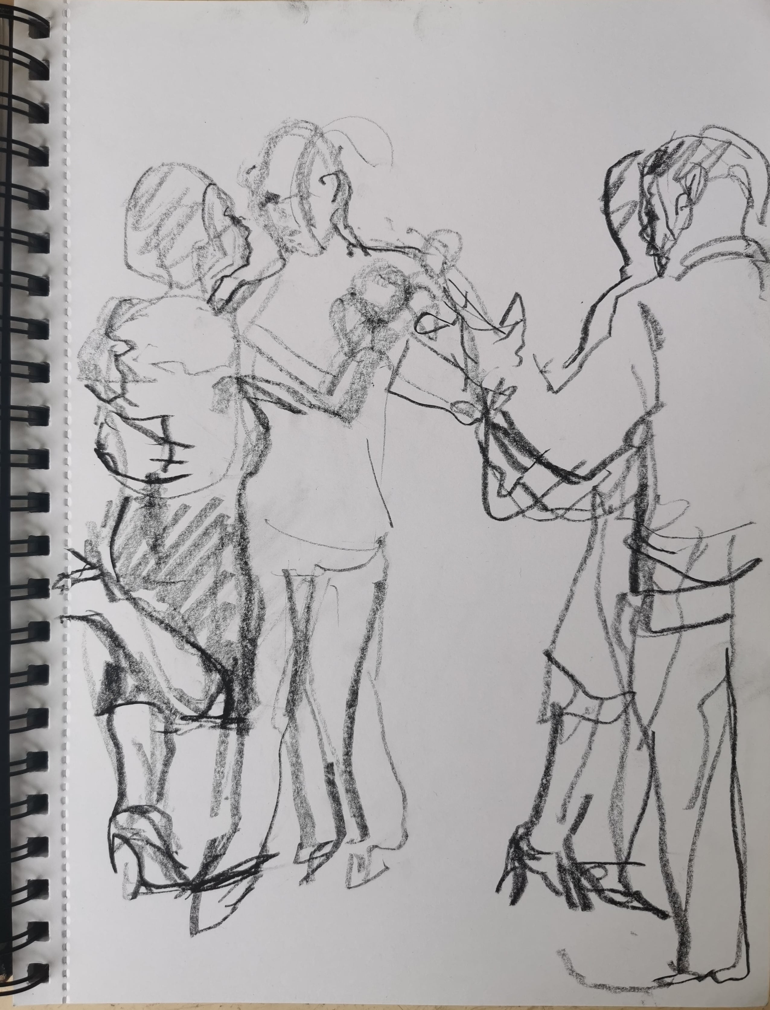 Ik heb altijd een kooltje in mijn broekzak zitten, voor als ik iets zie waar ik graag een tekening van wil maken en meestal zit er ook een schetsboek in mijn rugzak. Wanneer dit niet het geval is, dan pak ik wat er voorhanden is, of dit nu een placemat is, inpakpapier of een servet. Als ik de behoefte krijg om te tekenen, dan moet het hoe dan ook gebeuren!