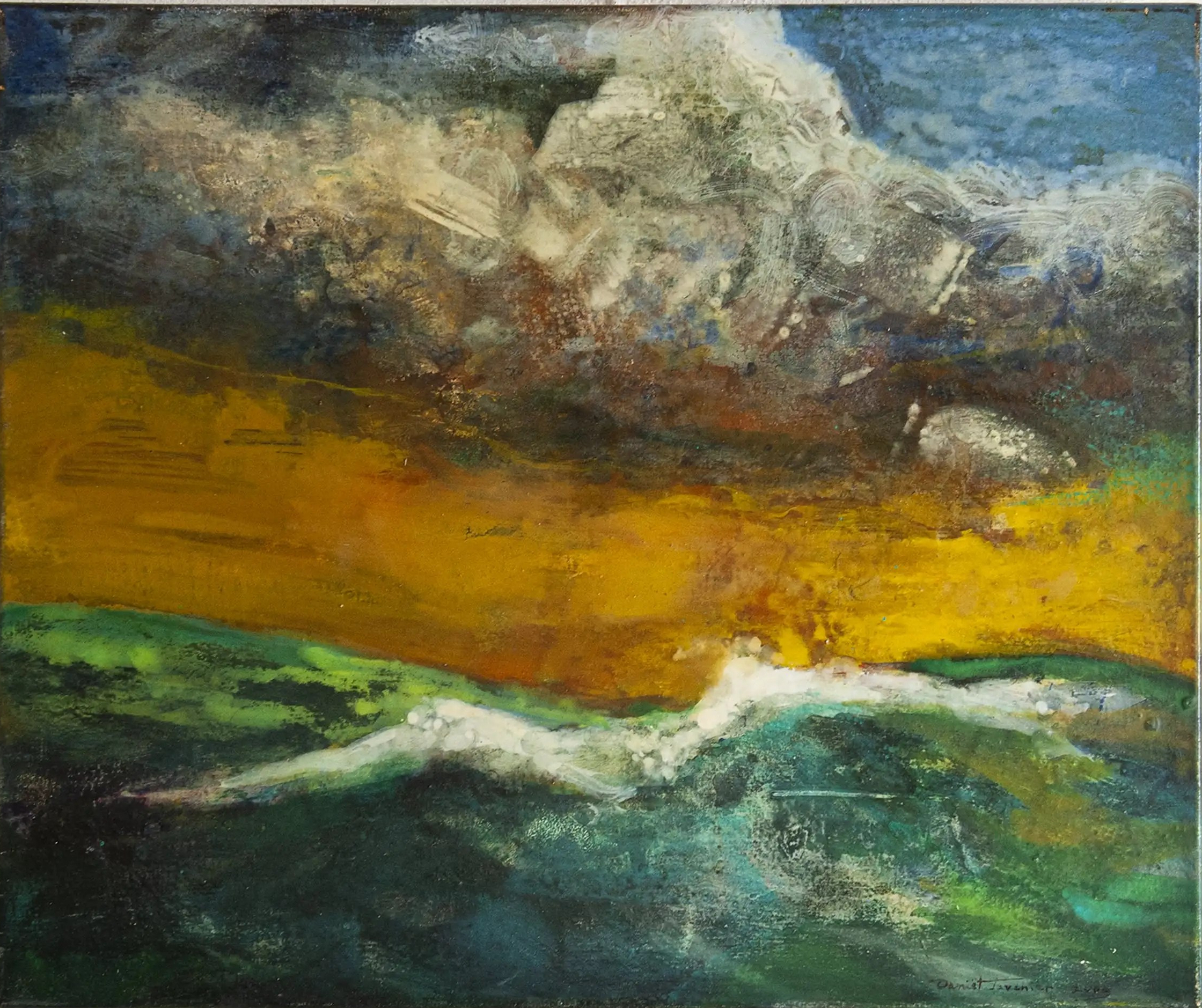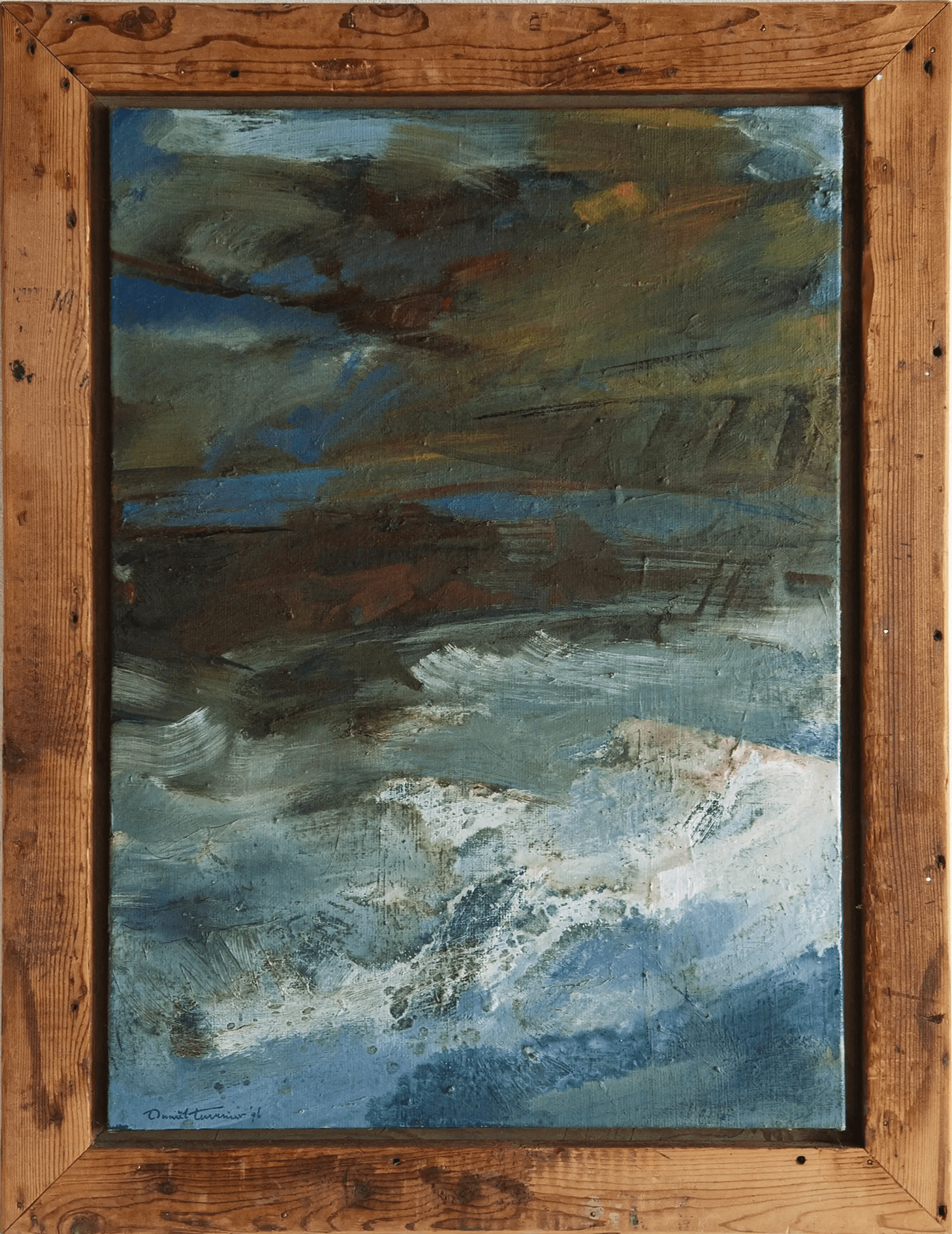 De Noordzee: “Donkere Wolken Gaan Voorbij”. Je kunt deze titel op verschillende manieren interpreteren: de donkere wolken die maar blijven komen of de donkere wolken die weer voorbij drijven. Voor mij drijven ze nu voorbij! Het was een stormachtige dag aan zee en het strand was bezaaid met plakkerig, groen schuim, maar ook daar zit schoonheid in! Geschilderd mei 2024.