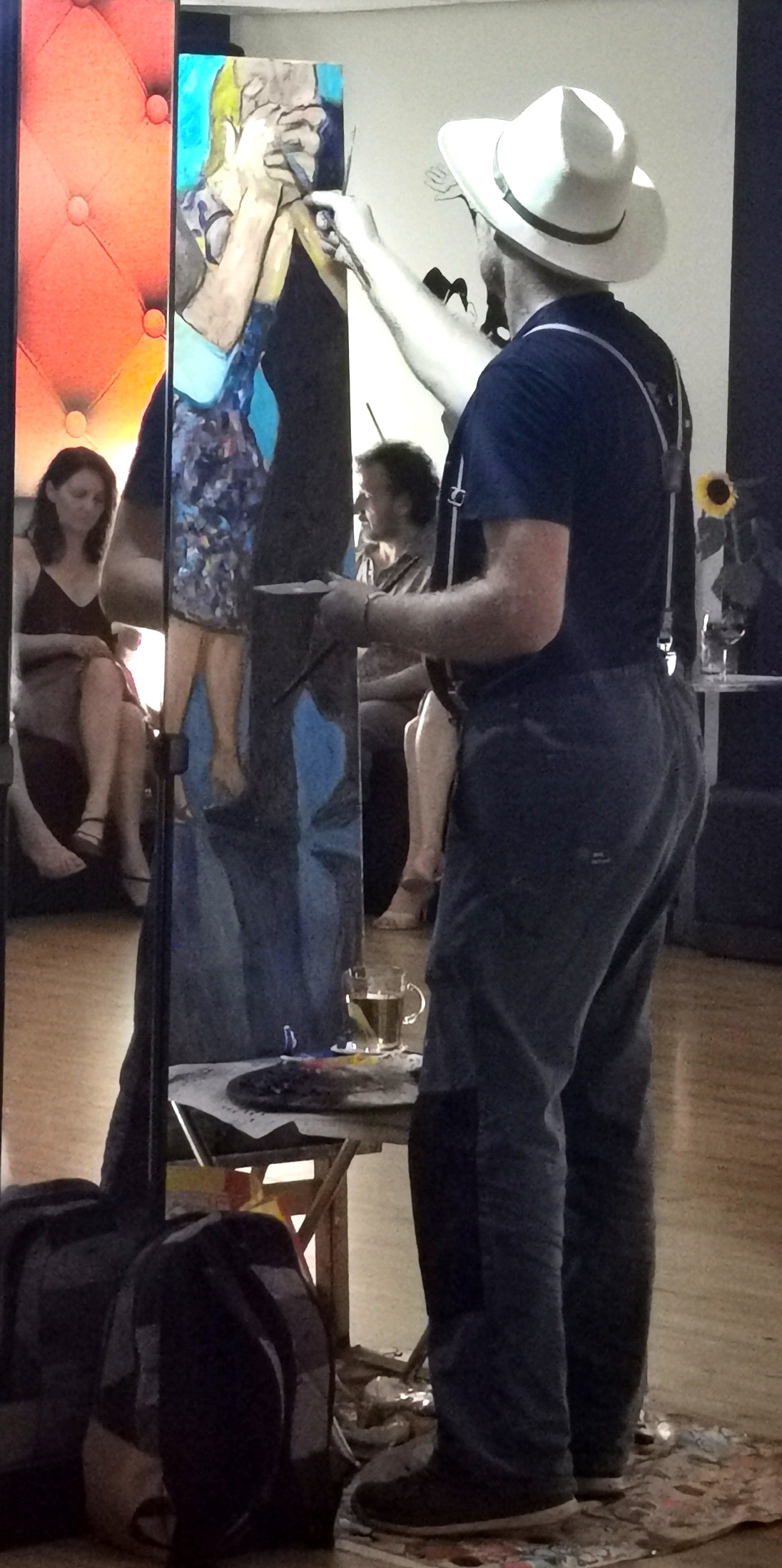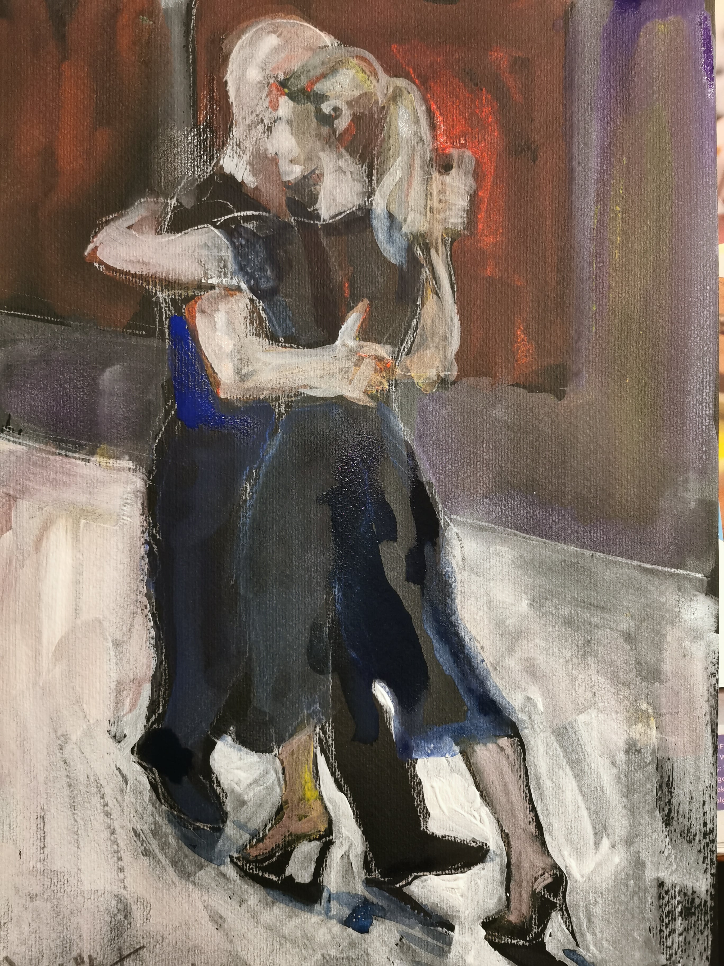 Een kunstschilder met Van Gogh-achtige trekjes op een dansvloer, kan dat wel goed gaan? Jazeker! Het was een heel leuk festival met workshops en drie avonden Argentijnse Tango, georganiseerd door Hilal Ercin, Matteo Manferdini en Patrick Remmerswaal bij De Dansschool 2020. Ik mocht de dansparen vastleggen en 2 van mijn schilderijen werden verloot onder de dansparen. Ik stond met mijn ezel en palet in het midden van de dansvloer en heb volop genoten van het schilderen, maar ook van de dansende paren om mij heen. Wat een passie!